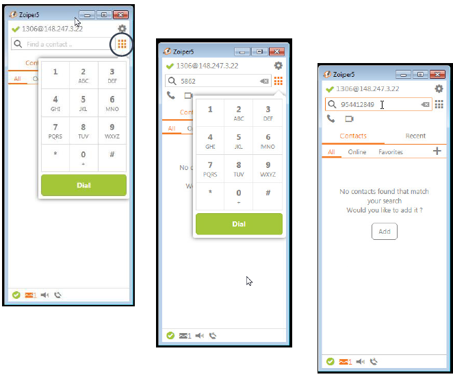 Una vez que nuestro softphone se registra ya estamos en condiciones de marcar a otras extensiones del conmutador o podemos marcar a números fijos de la calle, por lo regular anteponiendo un numero 9 al número a marcar.