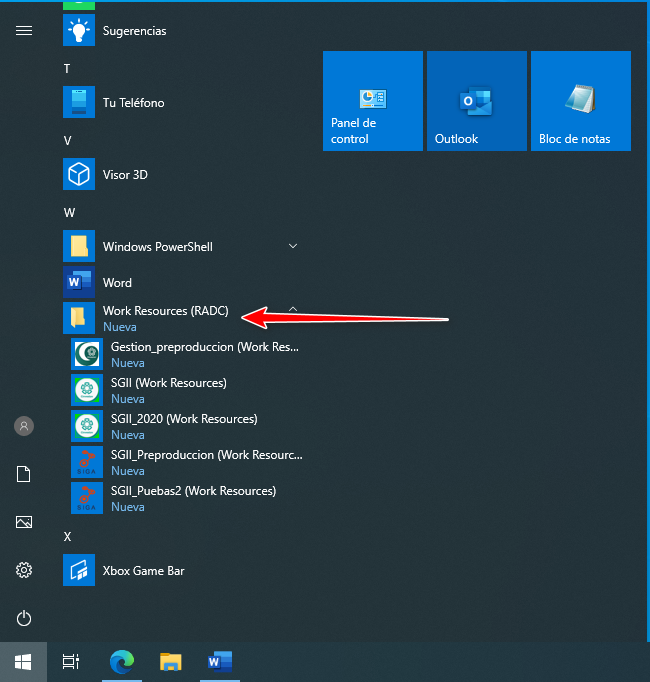 10.- También puede encontrar los accesos directos en el menú inicio en la parte del final en la carpeta Work Resources.
