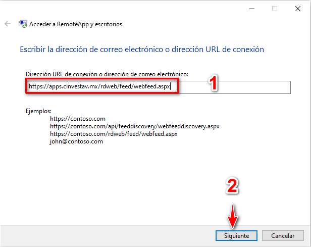 4.- Se abrirá una ventana en donde deberá ingresar la siguiente dirección: