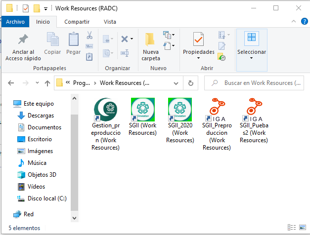 9.- Nos abrirá una ventana con los accesos a los que puede ingresar, en este ejemplo se tiene permiso de ingresar a 5 opciones, puede copiar los accesos a su escritorio para que le sea más rápido ingresar.