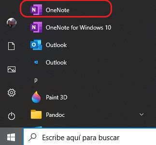 Ahora vamos a abrir la aplicación de escritorio OneNote 2016 o posterior (Esto no aplica con OneNote for Windows 10).