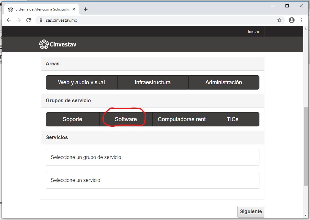 En Servicios, seleccionamos Software Mathematica y le damos click en Siguiente.