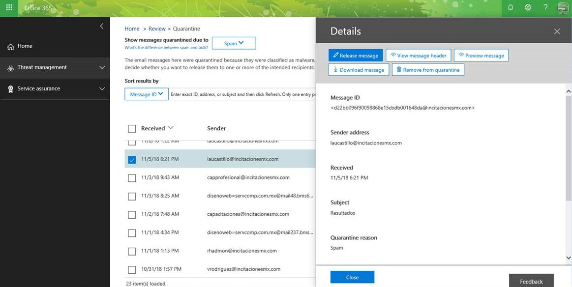 Da clic en el siguiente enlace para revisar tus correos en cuarentena: https://security.microsoft.com/quarantine