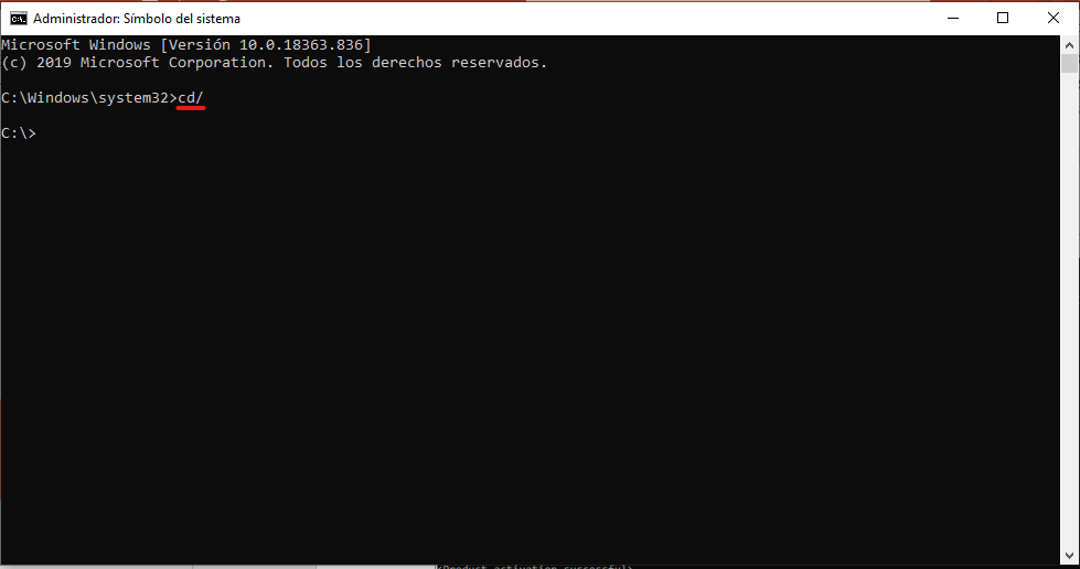 Listo, si escribiemos bien el comando nos saldra la leyenda que el producto se activo con exito.