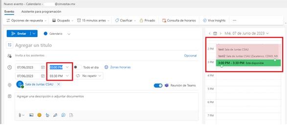 Solicitar la sala o recurso para una reunión (Outlook Web)