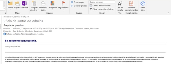 Llega un correo automáticamente que la que la Reunión fue aceptada o rechazada.