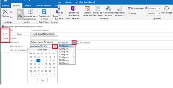 Seleccionar el día y el horario de la reunión y elegir el botón enviar.