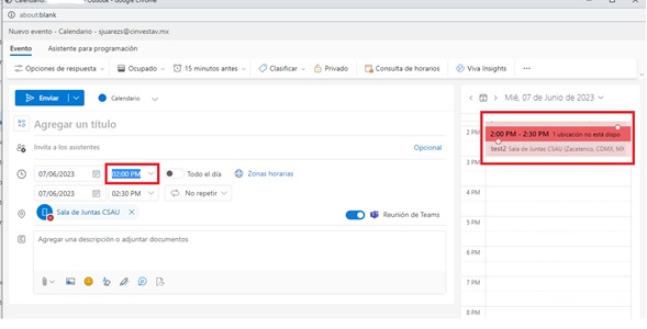Si se quiere enviar la solicitud aparece que la sala no está disponible.