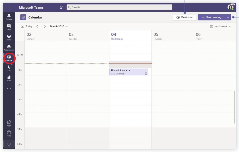 Después de entrar con su cuenta @cinvestav.mx en la aplicación de Teams dar clic en calendario para poder programarla en "Nueva reunión".